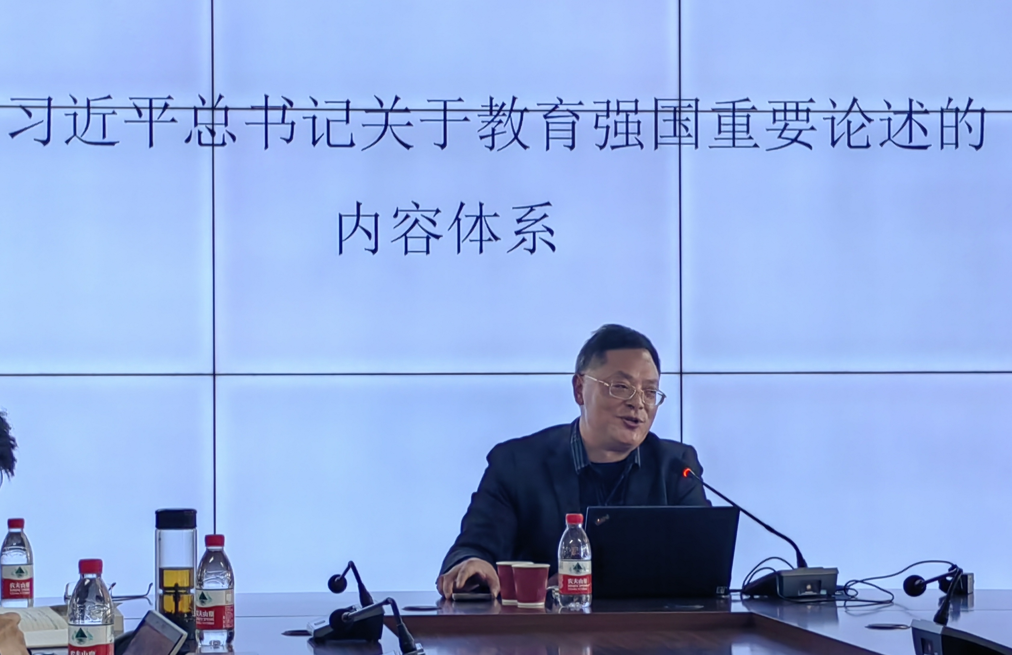 胡绪明教授以“教育强国与中国现代化——习近平总书记关于教育强国重要论述的学习体会”为题,从习近平教育强国重要论述的战略视野、习近平教育强国重要论述的内容体系、以及自身关于中国式教育强国建设的思考几个方面给师生做了一场精彩而深刻的专题报告。“夫争天下者,必先争人。”“一树十获者,木也;一树百获者,人也”。胡教授从中国历代对教育兴邦中的重要作用和优先战略地位谈起,分析了习近平教育强国重要论述的战略视野,始终站在“世界百年未有之大变局”的国际视野看教育、始终联系“中华民族伟大复兴”的战略全局看教育、始终抓住教育的根本问题来思考教育。深刻剖析了习近平教育强国重要论述“九个坚持”的内容体系,坚持党对教育事业的全面领导;坚持把立德树人作为根本任务;坚持优先发展教育事业;坚持社会主义办学方向;坚持扎根中国大地办教育;坚持以人民为中心发展教育;坚持深化教育改革创新;坚持把服务中华民族伟大复兴作为教育的重要使命;坚持把教师队伍建设作为基础工作。最后他阐述了习近平教育强国重要论述具有政治的高度、历史的厚度、教育的温度、哲学的深度以及实践的力度的理论特质。