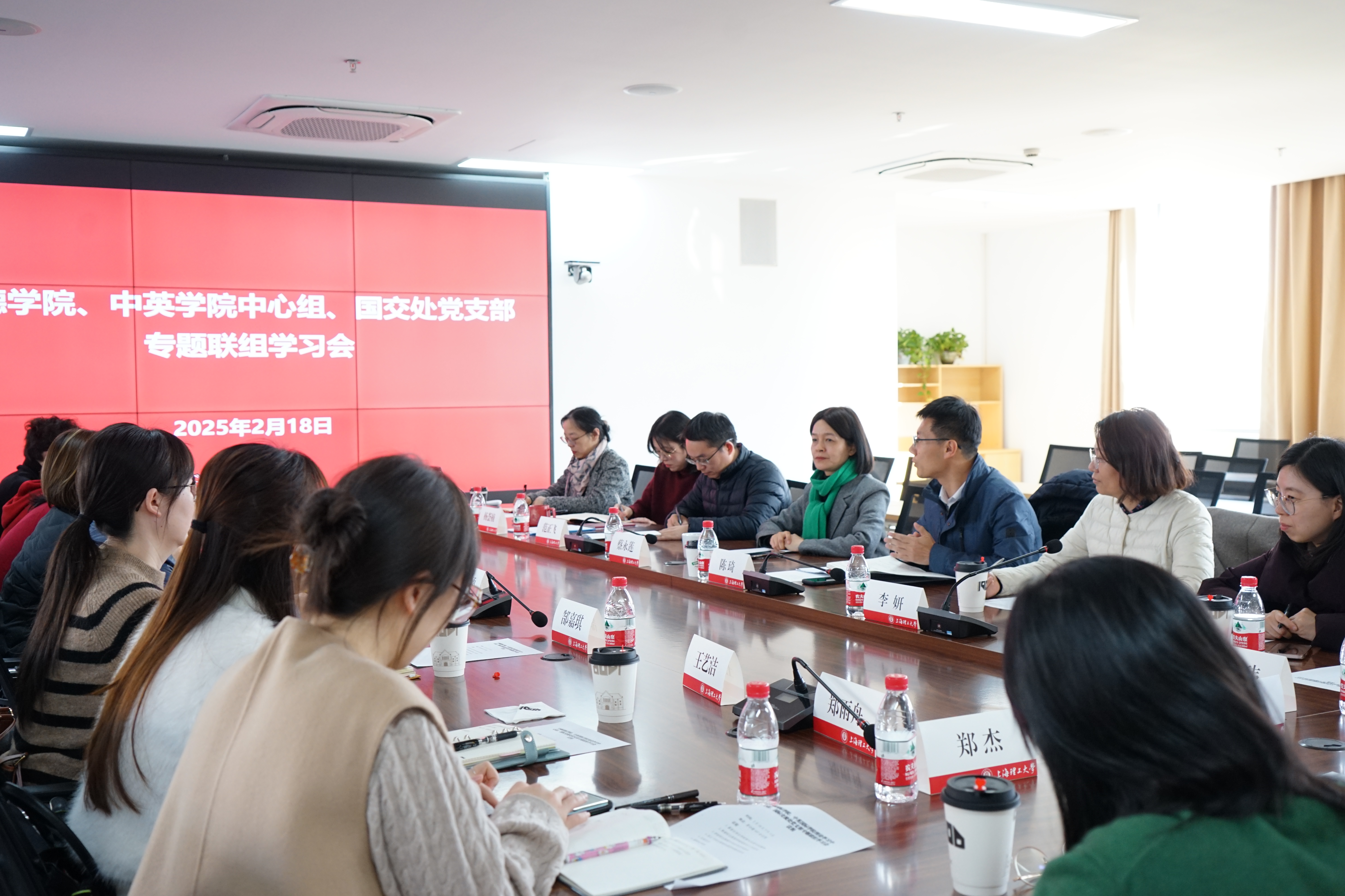 为全面贯彻落实学校第九次党代会精神,守正创新,重实效、强实干、抓落实,推动第九次党代会精神落地生根、开花结果、尽收其效。 218日下午,中德国际学院和中英国际学院理论学习中心组、国际交流处党支部以“深入学习贯彻学校第九次党代会精神,赋能中外合作办学事业高质量发展”为主题,在国合楼407开展了专题联合学习会议。副校长蔡永莲,国际交流处处长陈琦、副处长徐璟玮及其他党支部成员,中德国际学院党委书记范正飞,副院长(主持工作)杨荟楠,党委副书记、副院长徐芳及党委中心组其他成员;中英国际学院党委书记李妍,党委副书记、副院长蔡卉及党委中心组其他成员参加了学习。会议由范正飞主持。