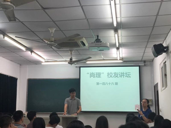 8月24日晚,上海-汉堡国际工程学院在学院102教室成功举办第一百八十六期“尚理”校友讲坛。柏林工业大学硕士李陶宁校友与大一新生展开对话,辅导员苗朋朋老师主持讲坛。