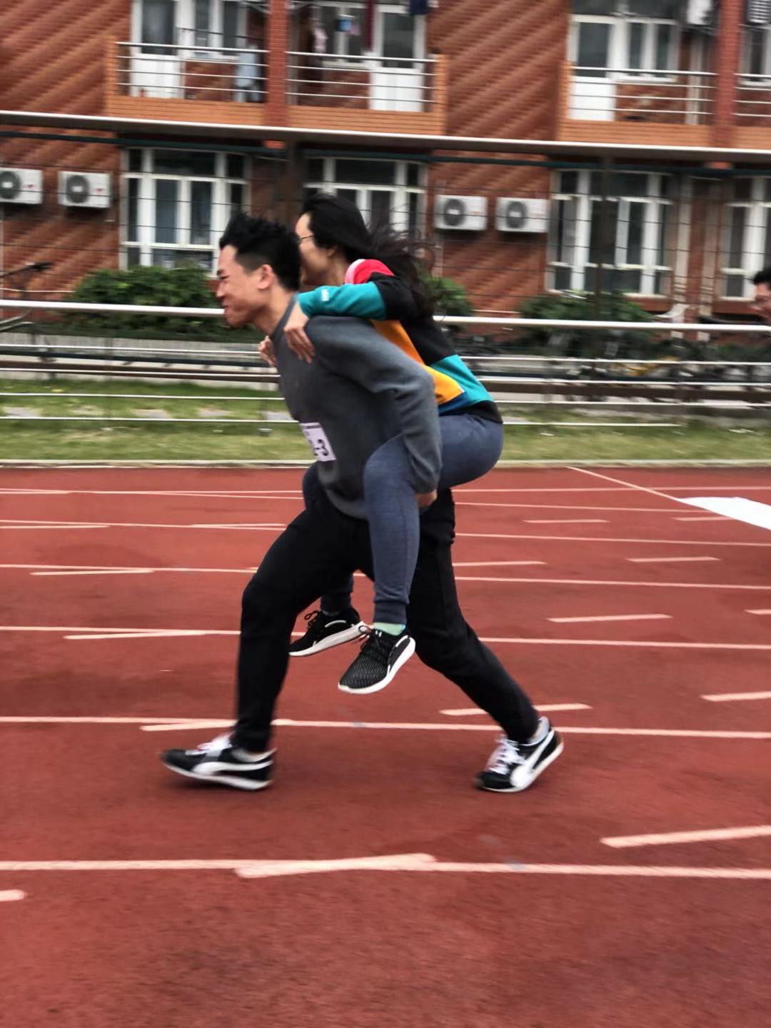 我校45支师生参赛队伍,通过4人接力合力分别完成灭火器灭火、高低杠障碍、救助绕弯、水带喷射共4个任务,按用时排名,总用时最少队获胜。