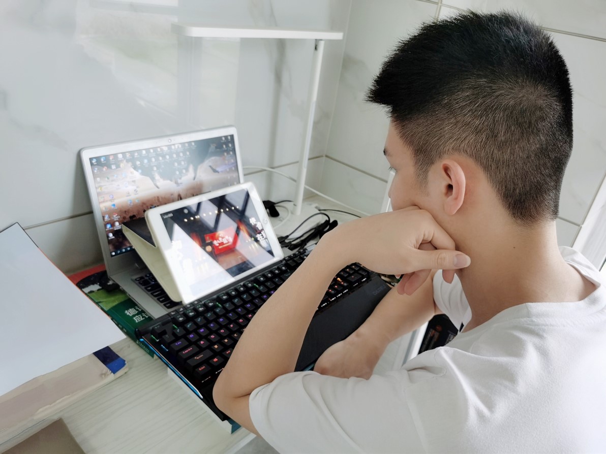而同学们也颇有感悟,在这场疫情防控阻击战中,看到无数党员真正将初心融进灵魂,把使命扛在肩上,用坚定的信念与坚强的意志坚守在抗疫一线。作为新时代的中国青年,也应遵循前辈的步伐,做到初心如磐、使命在肩,承担起当代青年党员应担之责。图为教师支部收看现场以及在家收看直播的学生。