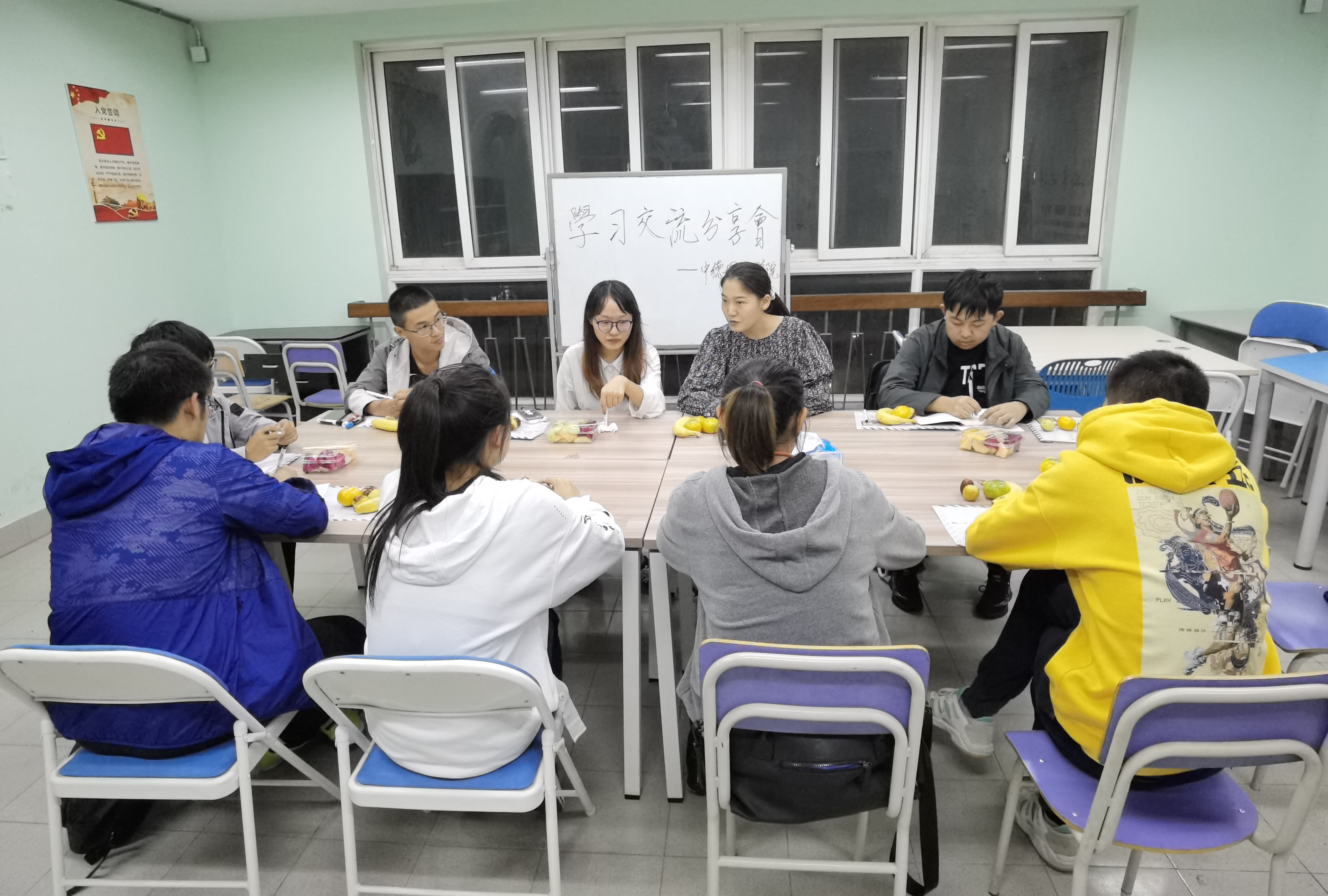 为了促进党建工作和学风建设更有效结合发展,10月16日下午中德国际学院在宿区活动室二公寓一号楼五楼举办“互相学习促发展 党建交流共提升”的主题活动。我院2017级电气工程及其自动化专业、上海市奖学金获得者金梓琳出席为新生做分享,交流会由兼职辅导员胡锦焱主持。