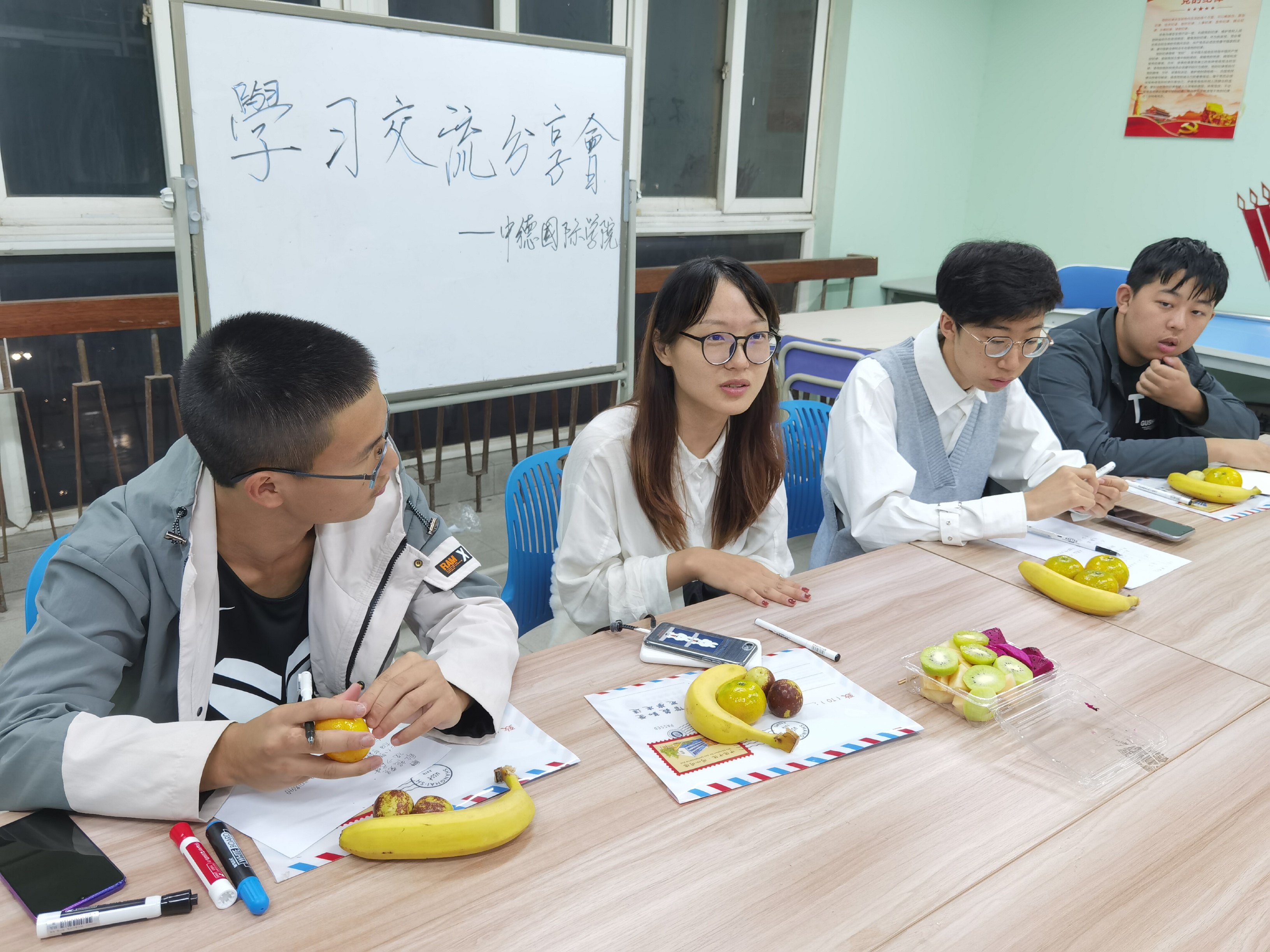 金梓琳分别从她的入党心得、学习经验和院学生会工作三方面展开全面细致的分享交流。她表示,自己是出生在一个党员的家庭,从小就受到一定的党性熏陶,对国家和人民充满热爱,想要为新时代中国的发展贡献一份力量;在学习上,她建议学弟学妹在大一时间里多思考勤读书、重视对德语和专业课的学习,为大三大四实习和备战出国读书夯实基础。金梓琳说,在院学生会工作,很锻炼工作协调能力,希望学弟学妹珍惜机会、利用好学生会的平台,多提高自己的工作实践能力。