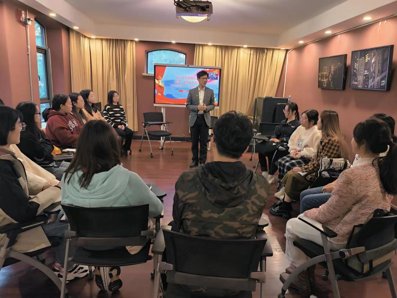 11月29日,学院党委副书记、常务副院长陈琦教授为我院师生上学习贯彻党的二十大精神的专题党课。此次党课的主题围绕《推动中外文明互鉴 构建人类命运共同体》展开,党员师生和入党积极分子参加。