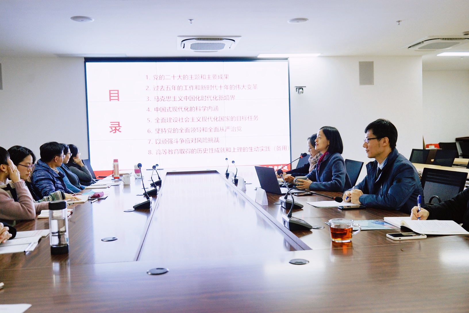 为深入学习贯彻党的二十大精神,12月1日下午,我校蔡永莲副校长为中德国际学院全院师生作二十大精神专题宣讲。全院教师和学生代表参加了学习会。学院常务副院长、副书记陈琦主持会议。