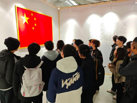在常设展厅中,同学们用心凝望着一面由留学生出国时随身携带、回国时又带回祖国的国旗,听讲解员介绍国旗背后的故事。这面国旗所蕴含的留学生的民族自豪感和对祖国的热爱眷恋,深深感染了大家。