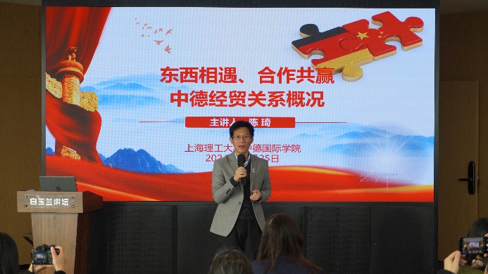 为进一步深化党建引领赋能增效,探索新时代基层治理新路径,12月25日,上海理工大学中德国际学院受邀为北外滩街道居民支部书记开展了一场主题为“东西相遇、合作共赢——中德经贸关系概况”的专题讲座。此次讲座由中德国际学院陈琦教授主讲,深入探讨了中德经贸关系的历史、现状与未来。中德国际学院党委书记范正飞带领学院教师参加讲座。
