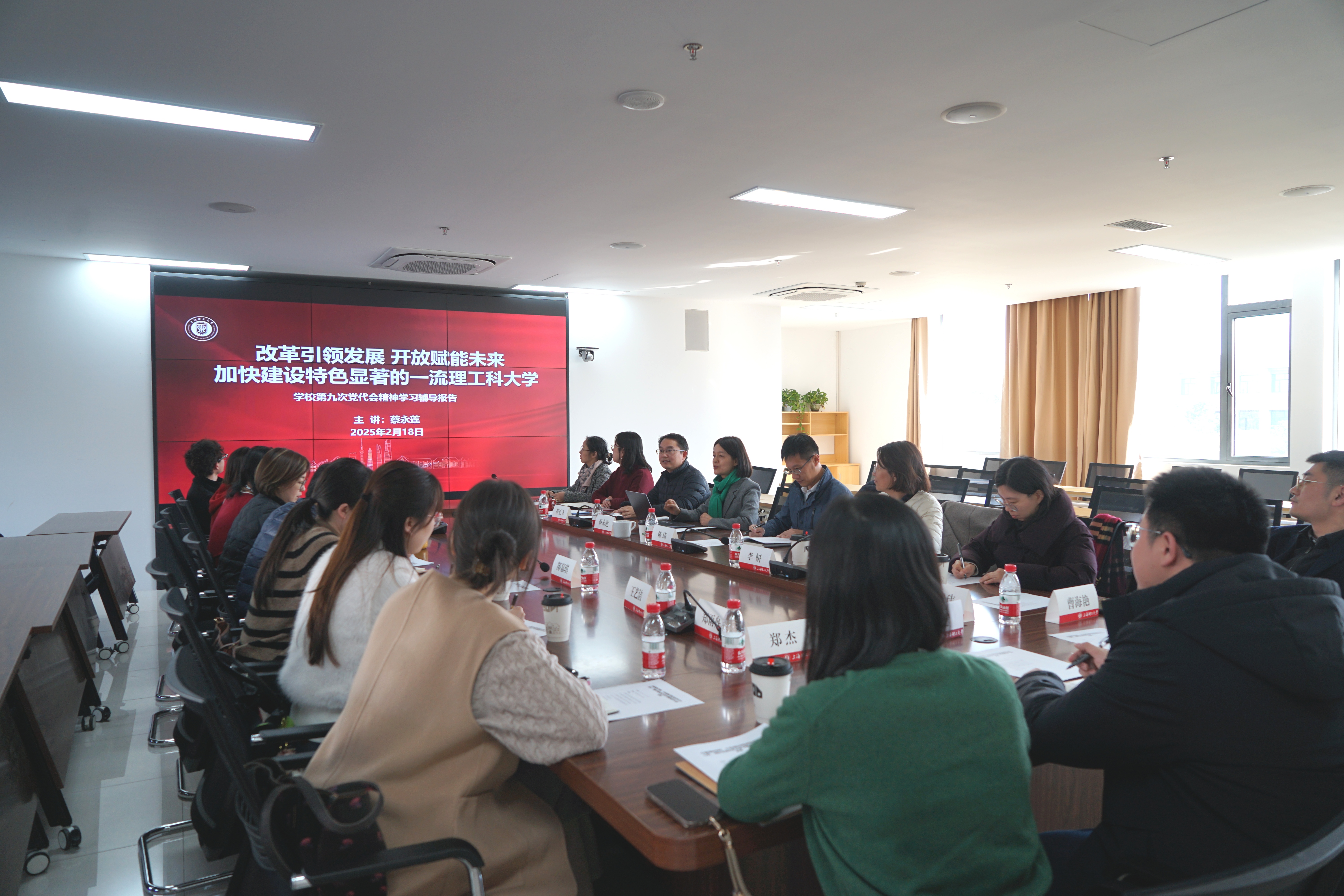 蔡校长作了题为《改革引领发展 开放赋能未来——加快建设特色显著的一流理工科大学》的学习第九次党代会精神辅导报告。蔡校长介绍了大会概况,回顾了过去六年学校所取得的突出成就,总结了学校发展的宝贵经验;以“上理三问”提出了新征程新起点面临的六大任务。她特别强调了贯彻落实学校第九次党代会精神,要加大高层次对外合作的这一任务,相关职能部门和学院要不断提升党建引领保障事业高质量发展的能级,齐心协力,以务实创新的作风,勇毅前行的担当推动国际合作提质增效,助力学校发展再跨越,圆梦“双一流”。
