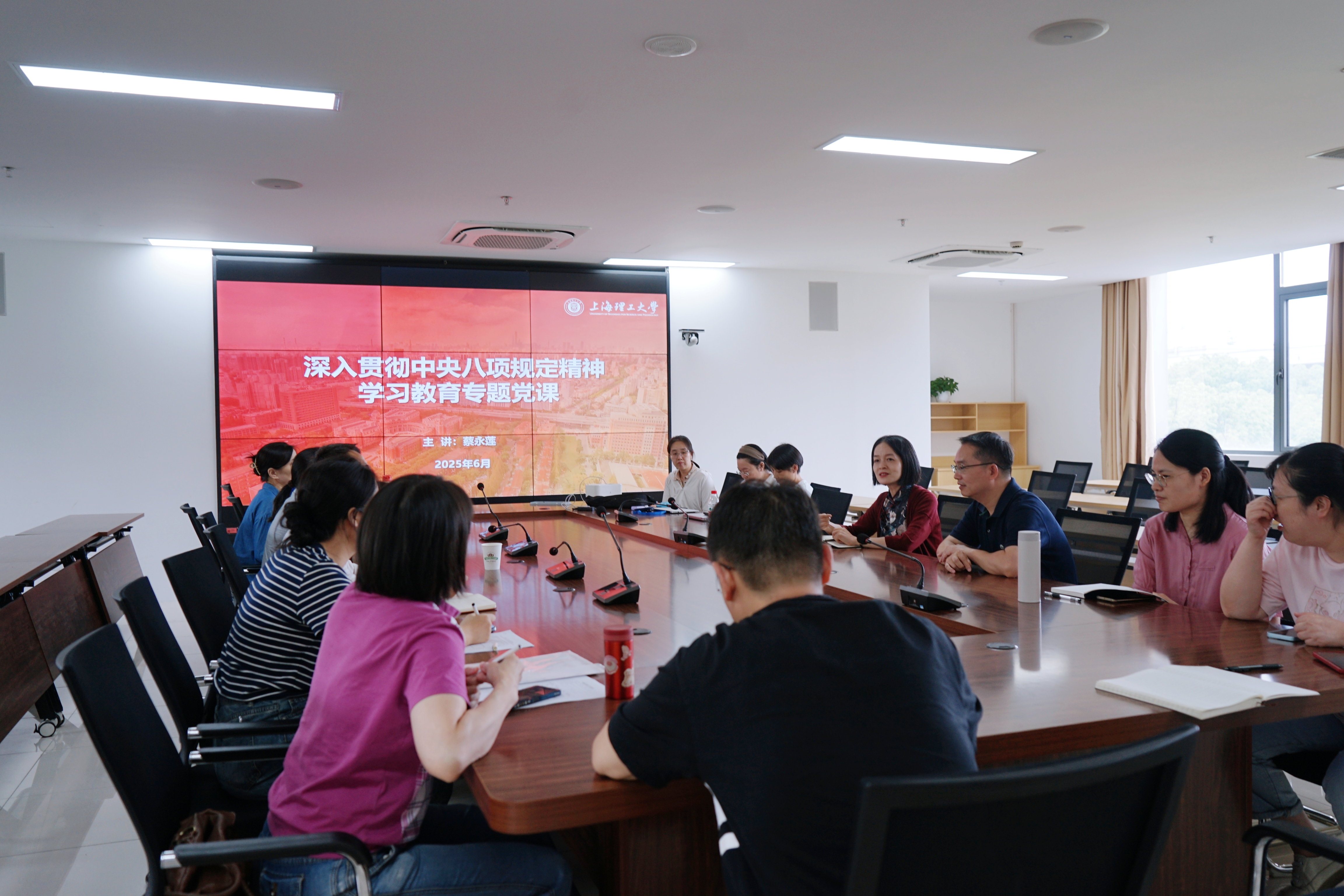 主题党日活动伊始,蔡永莲讲授专题党课。她从深刻把握扎实开展深入贯彻中央八项规定精神学习教育的重大政治意义切入,系统阐释中央八项规定及其精神的核心要义与丰富内涵,全面梳理党的十八大以来深入贯彻中央八项规定精神所取得的历史性、开创性成效。同时,紧密结合高校领域典型案例,深入剖析违反中央八项规定精神的突出问题与具体表现。她着重强调,全体党员务必深刻认识到中央八项规定精神是必须长期坚持、刚性执行的铁规矩、硬杠杠,必须保持战略定力,以钉钉子精神常抓不懈、久久为功。要切实将中央八项规定精神融入思想深处、践之于行动之中,推动学习教育往深里走、往实里走。